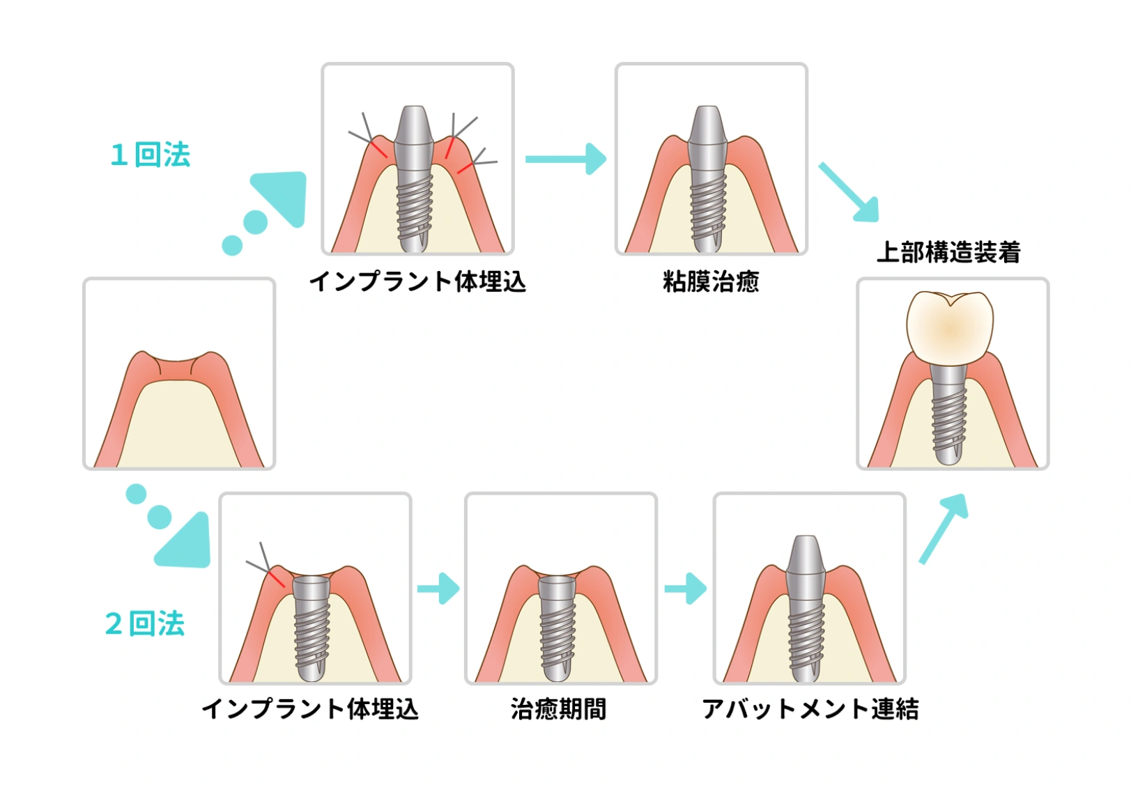 術式には大きく二つに分けられます。手術を1回だけ行う1回法と、手術を2回に分けて行う2回法があります。