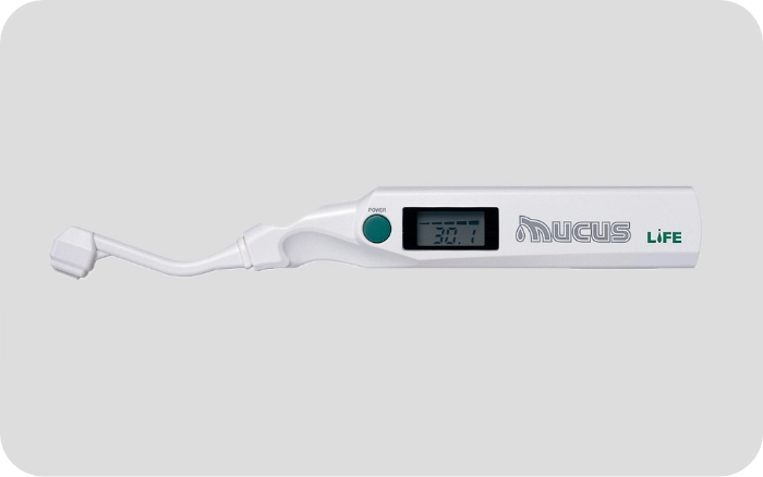 お口の中の水分量が少ないと「口臭」「食べ物が飲み込むにくい」「虫歯になりやすい」などの原因の1つとして考えられます。お口の粘膜に含まれる水分量を2秒で測定します。