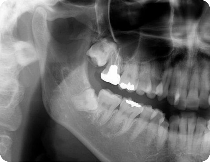 まずはレントゲンC1などで親知らずの生えてきている向きや生え方を確認します。また、隣接した歯への影響を正しく分析します